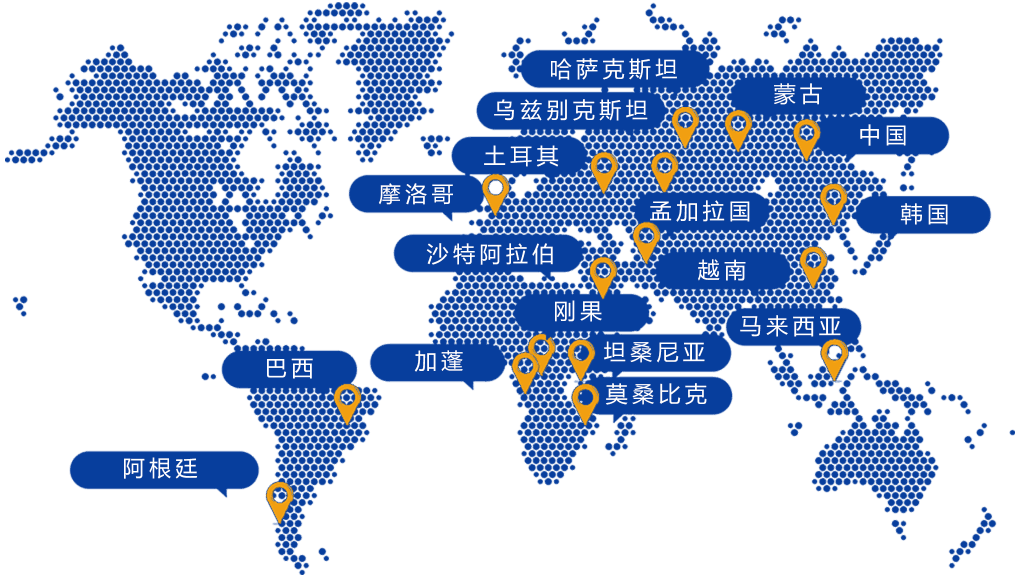 積極開拓國內(nèi)、外市場,產(chǎn)品已遠(yuǎn)銷烏茲別克斯坦、哈薩克斯坦、土耳其、韓國、沙特阿拉伯、越南、蒙古、馬來西亞、孟加拉國、阿根廷、巴西、摩洛哥、莫桑比克、剛果、加蓬、坦桑尼亞等多個(gè)國家。